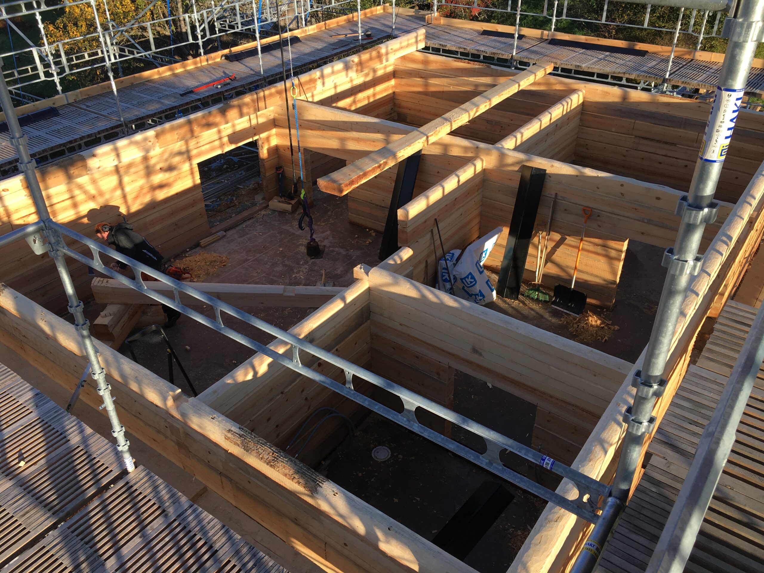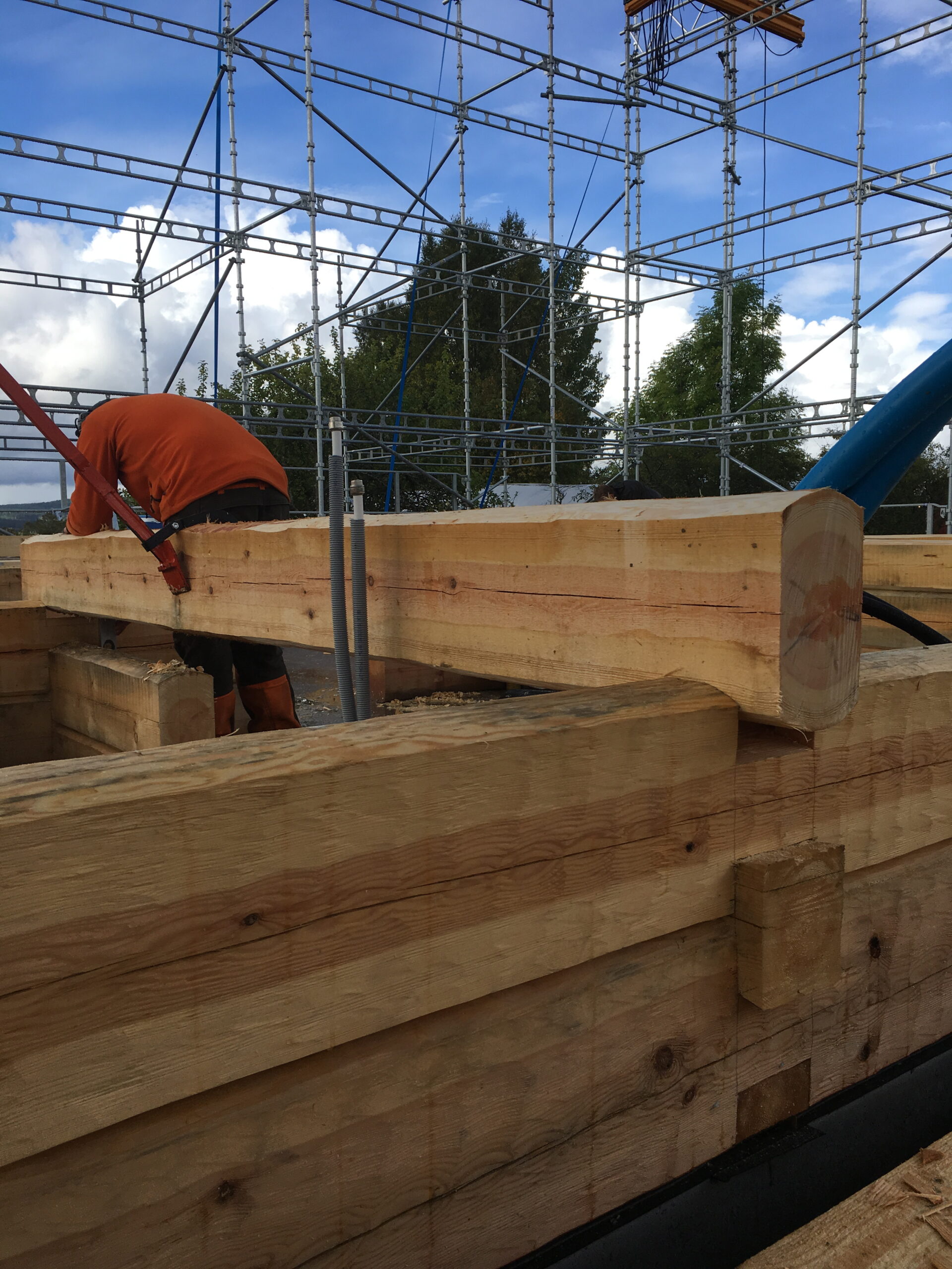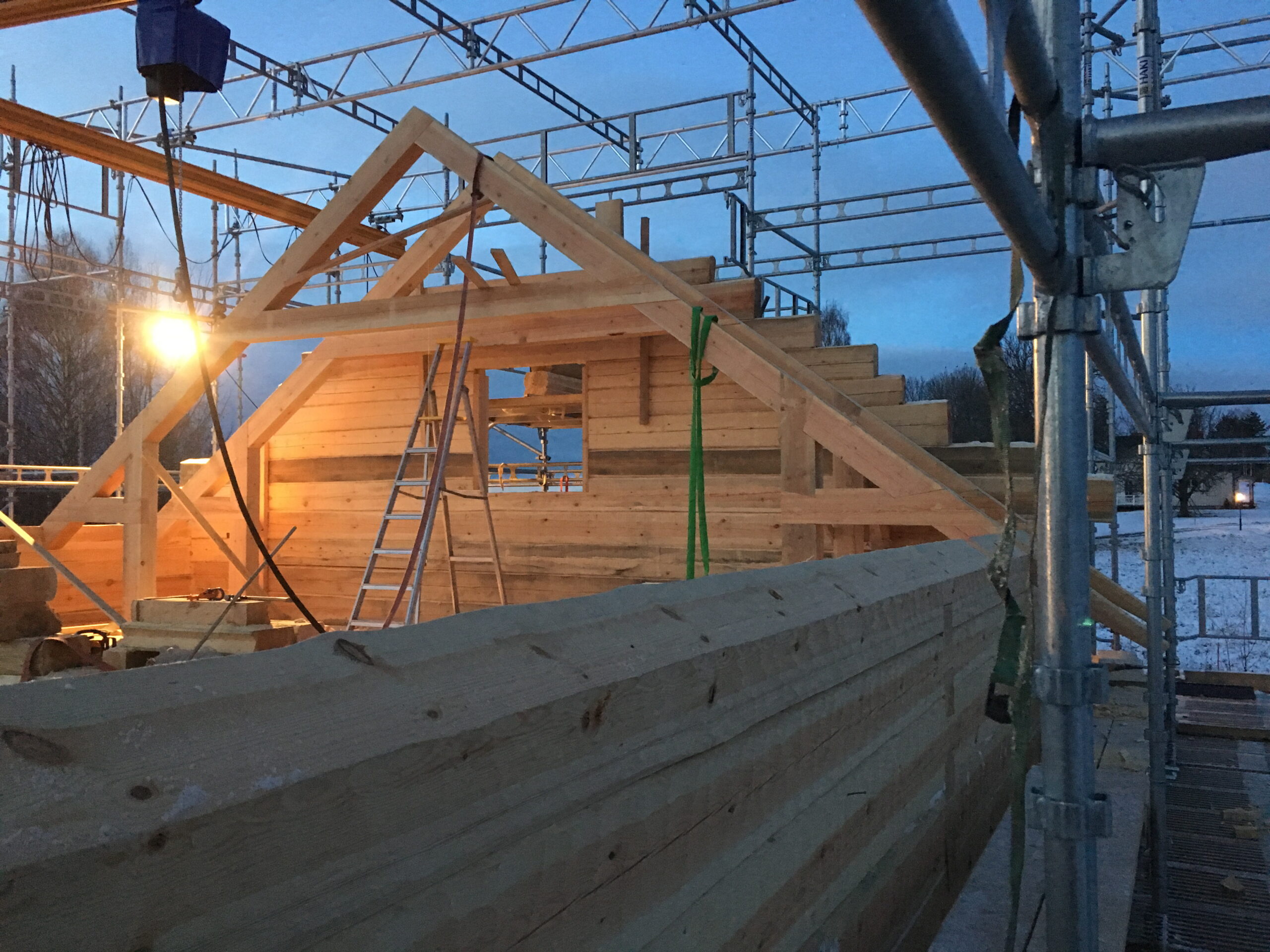 Här har vi fått det fina förtroendet att rita och uppföra ett helt nytt, unikt handtimrat bostadshus. Vi bygger ett massivt, hållbart och sunt hus med potential att överleva många generationer.